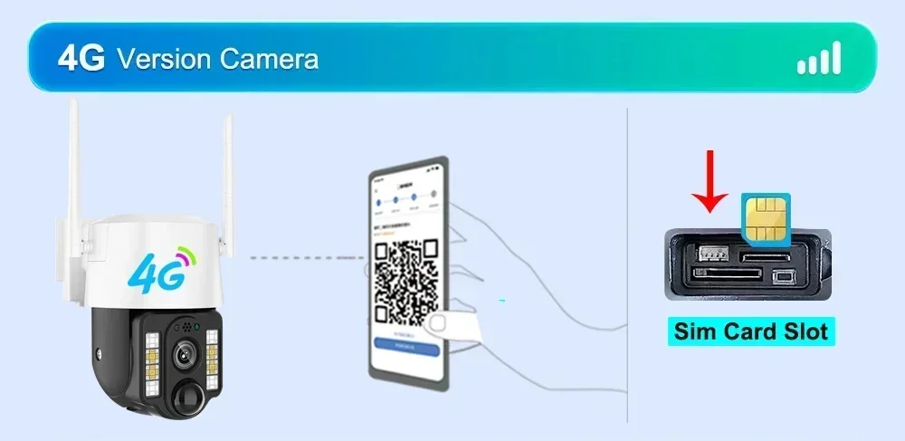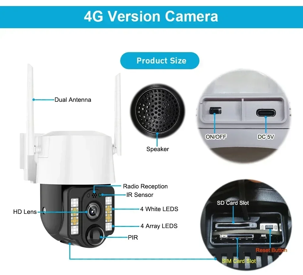 4G kamera se slotem pro SIM kartu, lze ji vložit do 4G SIM karty.