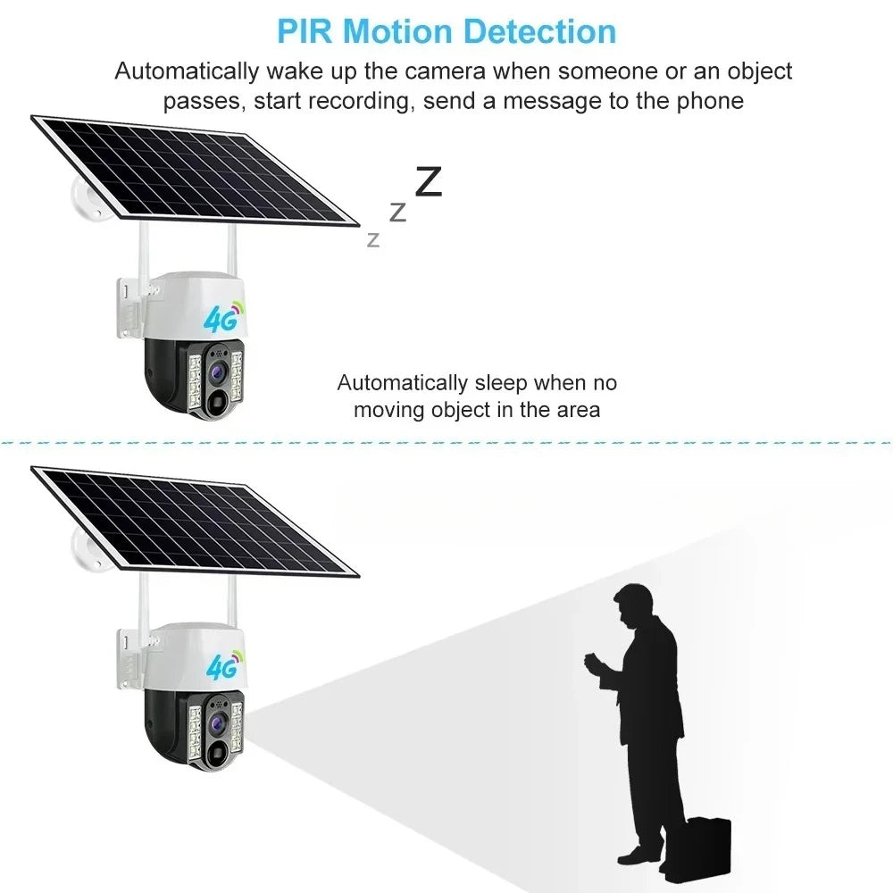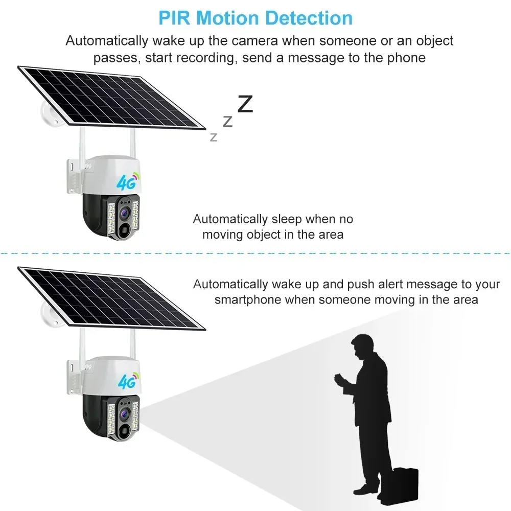 4G Sim Solární Kamera Venkovní Bezdrátová IP Kamera Nízkoenergetická Baterie PIR Detektor Pohybu Voděodolná CCTV Domácí Bezpečnostní Ochrana