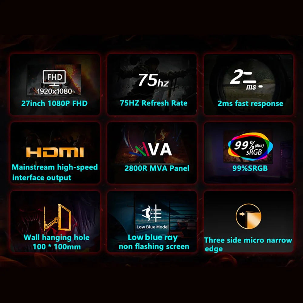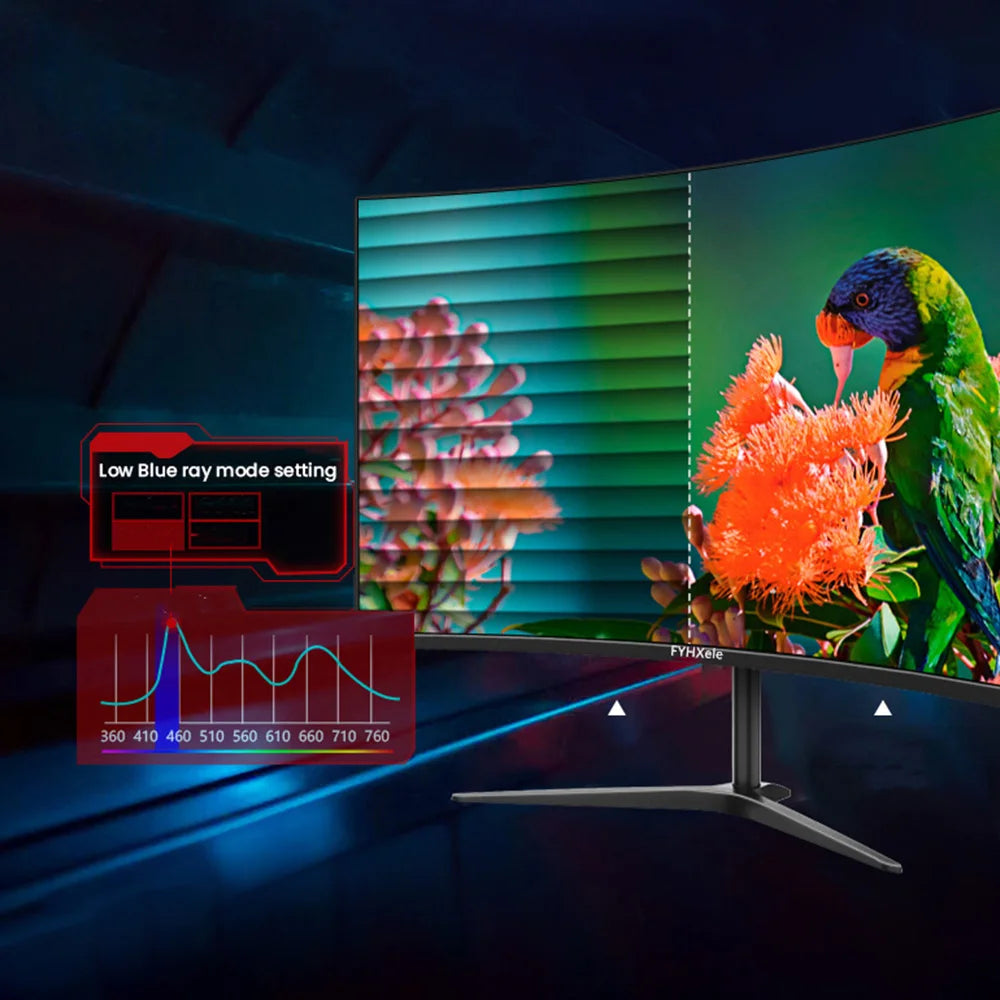 FYHXele FY27FMC-B je vybaven zakřiveným MVA panelem s rozlišením FHD 1920x1080. Poměr stran 16:9, pozorovací úhel 178° a obnovovací frekvence 75 Hz.