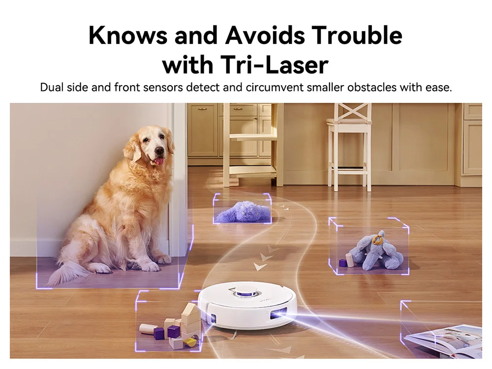 4. Dvojité boční a přední senzory snadno detekují a obcházejí menší překážky.