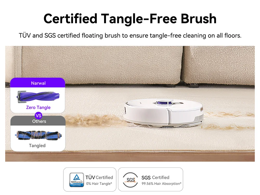 2. Plovoucí kartáč s certifikací TUV a SGS pro zajištění čištění bez zamotávání na všech podlahách.