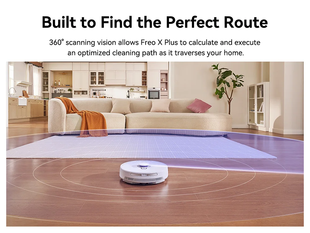 5. 360° skenovací vidění umožňuje Freo X Plus vypočítat a provést optimalizovanou čisticí trasu při průchodu vaším domem.
