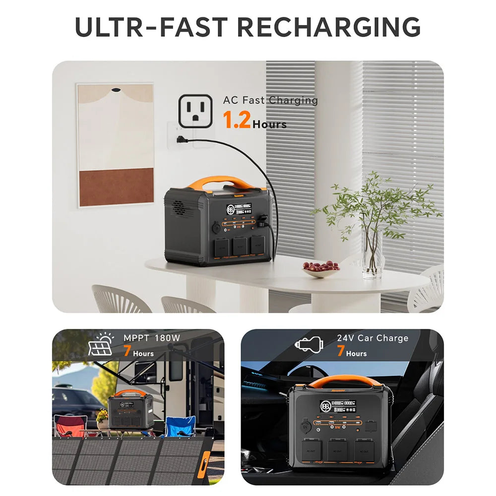 Tato přenosná elektrárna má jmenovitý výkon 1200 W s maximální hodnotou 2400 W, kapacitu 1102,5 Wh a rychlé nabití za 1,2 hodiny prostřednictvím 1000W střídavého vstupu.