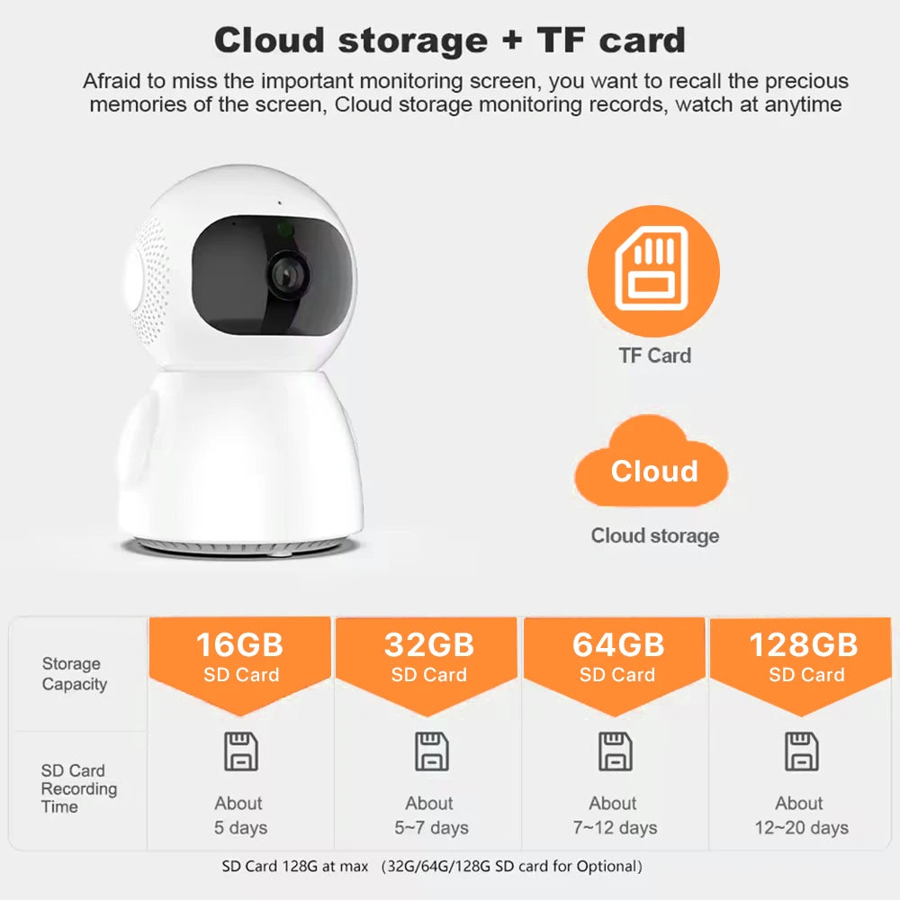 - Bis zu 128 GB SD-Karte deckt den täglichen Bedarf (Cloud-Speicher ist kostenpflichtig)