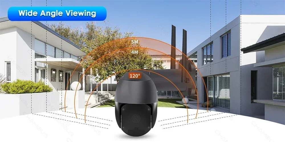 * Weitwinkelobjektiv mit 120-Grad-Betrachtungswinkel, integrierter fortschrittlicher Bildsensorchip, diese kabellose Außenkamera nimmt Bilder in hoher Qualität auf.