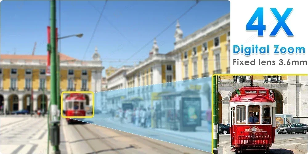 *Diese Videoüberwachungskamera kann mit einem UHD-Bild mehr Zoomdetails deutlich erkennen und bietet Ihnen ein besseres visuelles Erlebnis, das von anderen Produkten auf dem Markt unübertroffen ist. Erkennen Sie größere Details entfernter Objekte, ohne näher heranzugehen.