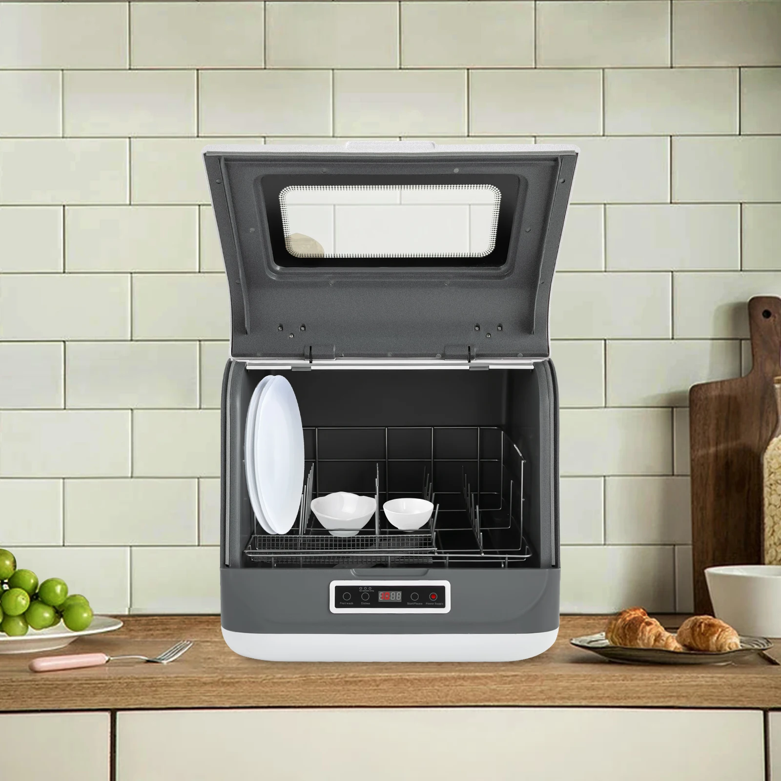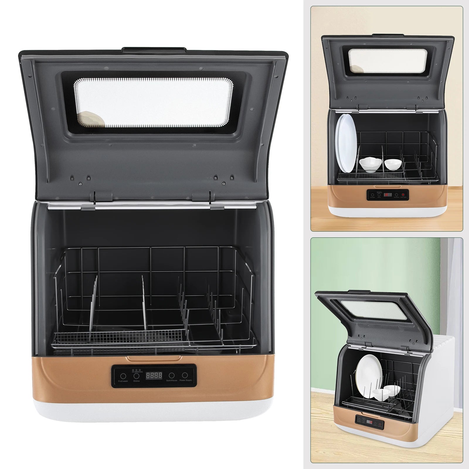 Dieser Geschirrspüler ist nicht nur praktisch zum Aufräumen nach dem Essen, sondern spart auch viel Wasser im Vergleich zum Spülen von Hand. Dieses Produkt vereint die Funktionen Spülen, Trocknen und Aufbewahren von Geschirr und kann nicht nur zum Geschirrspülen, sondern auch zum Waschen von Obst verwendet werden. Sein großes Fassungsvermögen und sein stilvolles Erscheinungsbild eignen sich für verschiedene Haushalte. Damit genießen Sie und Ihre Familie ein komfortableres und gesünderes Leben.
