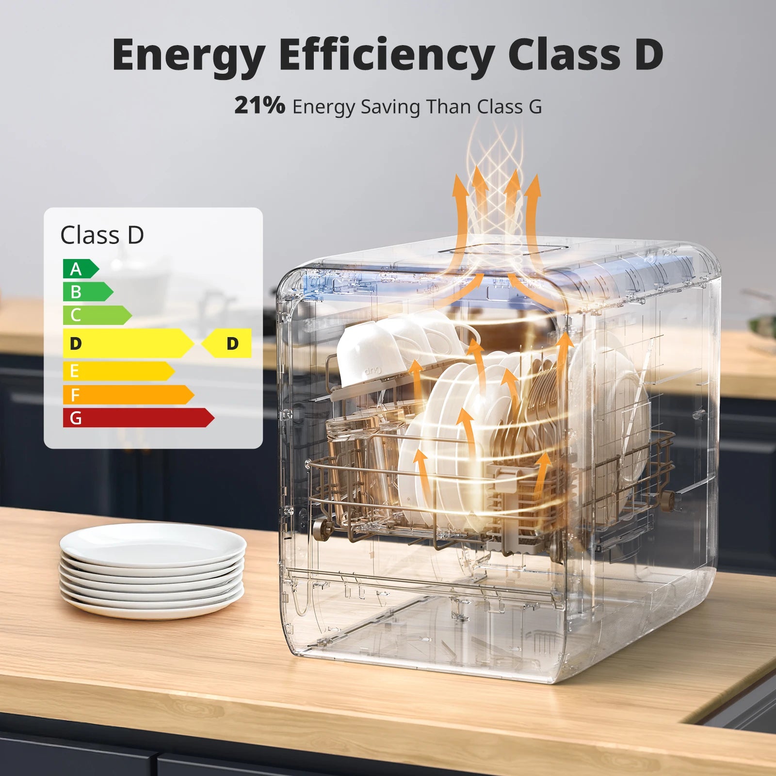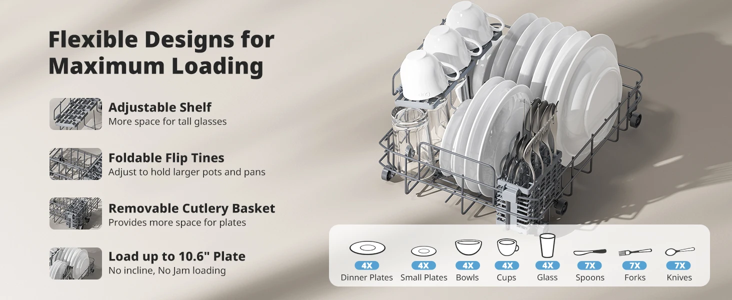 【Kompaktes und dennoch geräumiges Design】 Mit einer ultraschmalen Breite von nur 37 cm spart dieser kompakte C01-Geschirrspüler 20 % mehr Platz im Vergleich zu Standardmodellen mit 45 cm und ist daher ideal für kleine Küchen. Seine Tiefe von 51 cm bietet einen optimierten Innenraum für bis zu 4 Gedecke – perfekt für Haushalte mit 3 bis 4 Personen.