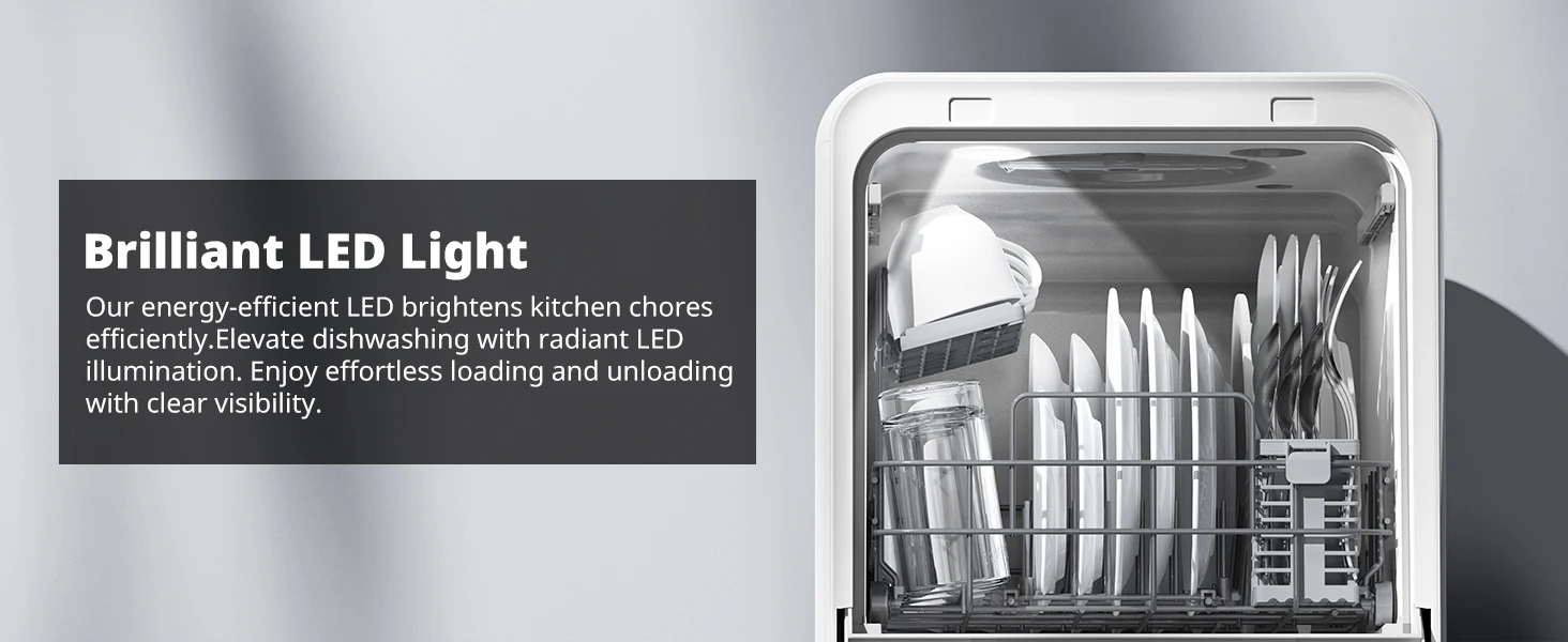 【Elegantes und funktionales Design】 Das milchig-weiße Äußere dieses Geschirrspülers ist elegant und stilvoll zugleich. Der klare LED-Touchscreen ermöglicht eine intuitive und schnelle Bedienung. Die doppelt verglaste Tür sorgt nicht nur für ein hochwertiges Gefühl, sondern bietet auch eine effektive Wärmedämmung für mehr Sicherheit. Die integrierte LED-Beleuchtung erhellt den Innenraum und macht den Spülvorgang sichtbar und leicht zu überwachen.
