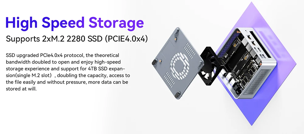 Der Mini-PC GEM12 Max 6900HX ist mit einem OCulink-Anschluss mit extrem hoher Bandbreite ausgestattet. Dies ermöglicht eine externe GPU-Lösung mit schnelleren Support-Geschwindigkeiten und weniger Übertragungsengpässen im Vergleich zu Thunderbolt 4 und USB 4. Hinweis: *Nicht Hot-Swap-fähig, OCulink belegt keinen M.2 2280 PCIe4.0 SSD-Steckplatz.