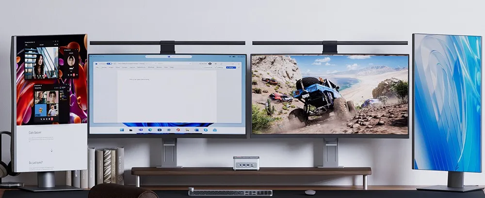 Der Minicomputer GEM12 Max hat nur ein Vierzigstel des Volumens eines Desktop-Computers und spart so viel Platz auf Ihrem Schreibtisch. Sie können ihn zu Hause oder auf Geschäftsreise problemlos in Ihr Gepäck packen und jederzeit und überall verwenden.