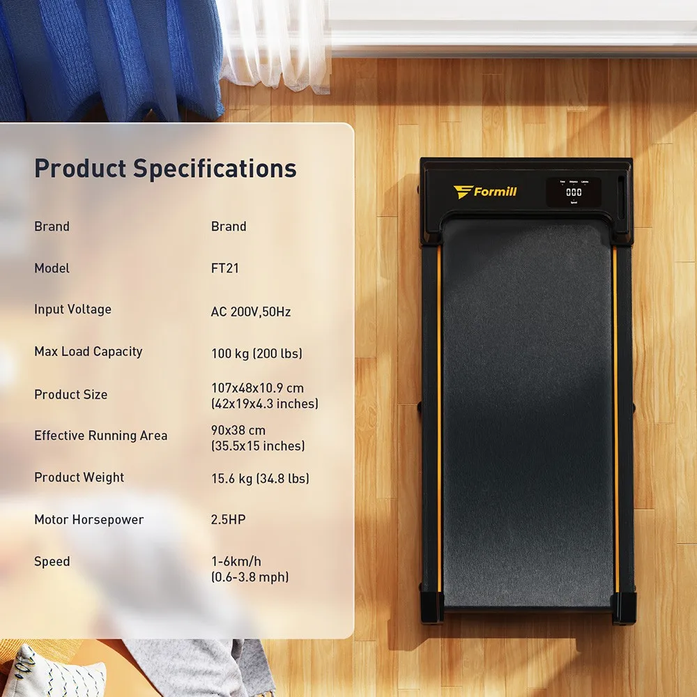 Das Formill Schreibtisch-Laufband ist mit einem verbesserten 2,5-PS-Motor ausgestattet, der für starke Leistung sorgt und weniger als 40 dB Geräuschentwicklung bietet. So ist auch bei hohen Geschwindigkeiten ein leiser Betrieb möglich. Der Geschwindigkeitsbereich reicht von 0,6 bis 3,8 Meilen pro Stunde, mit einer maximalen Tragkraft von 200 Pfund, um Ihren unterschiedlichen Trainingsanforderungen gerecht zu werden.