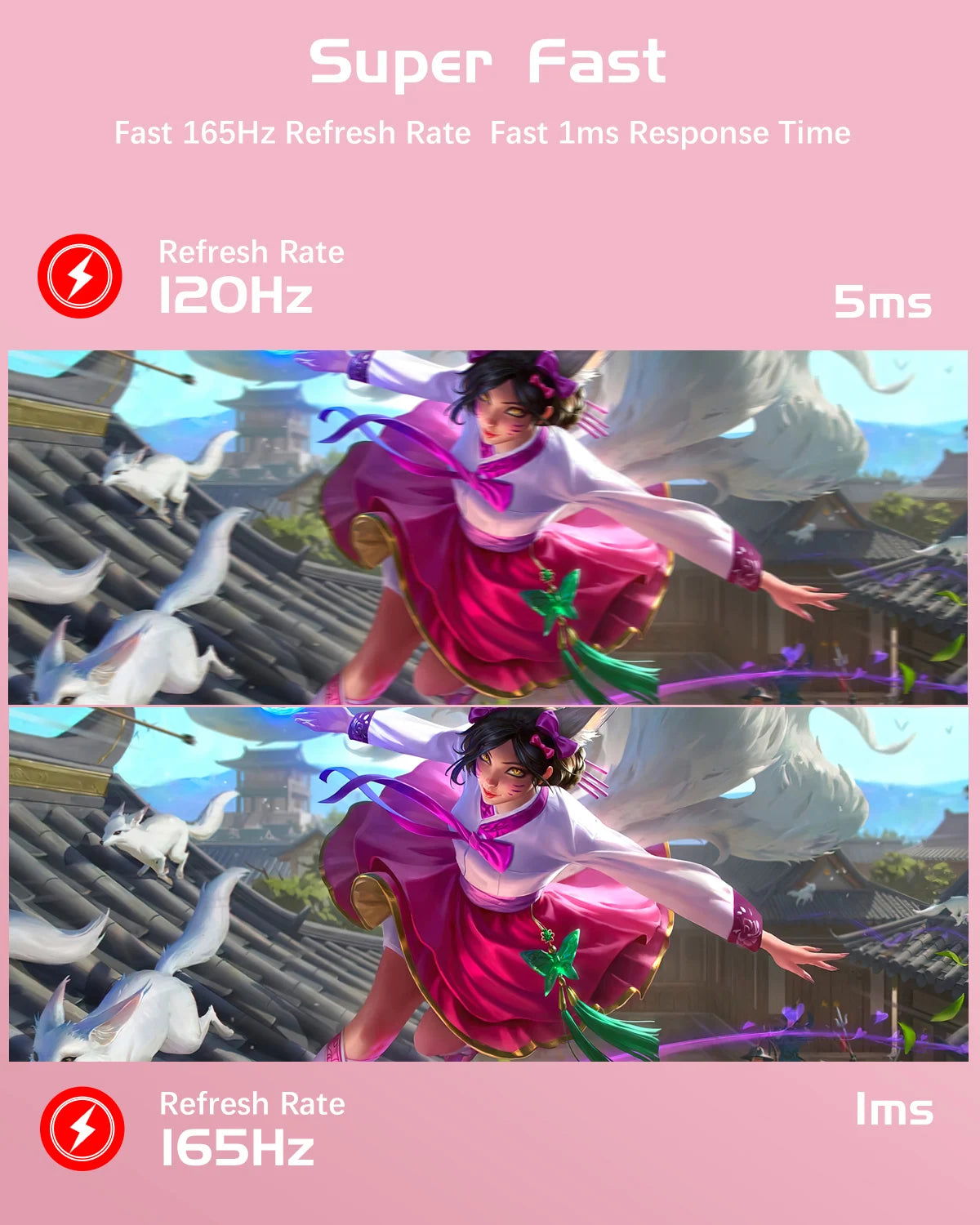 1. Bildwiederholfrequenz von 165 Hz, kompatibel mit 144 Hz, flüssiger und bleibt nie hängen.