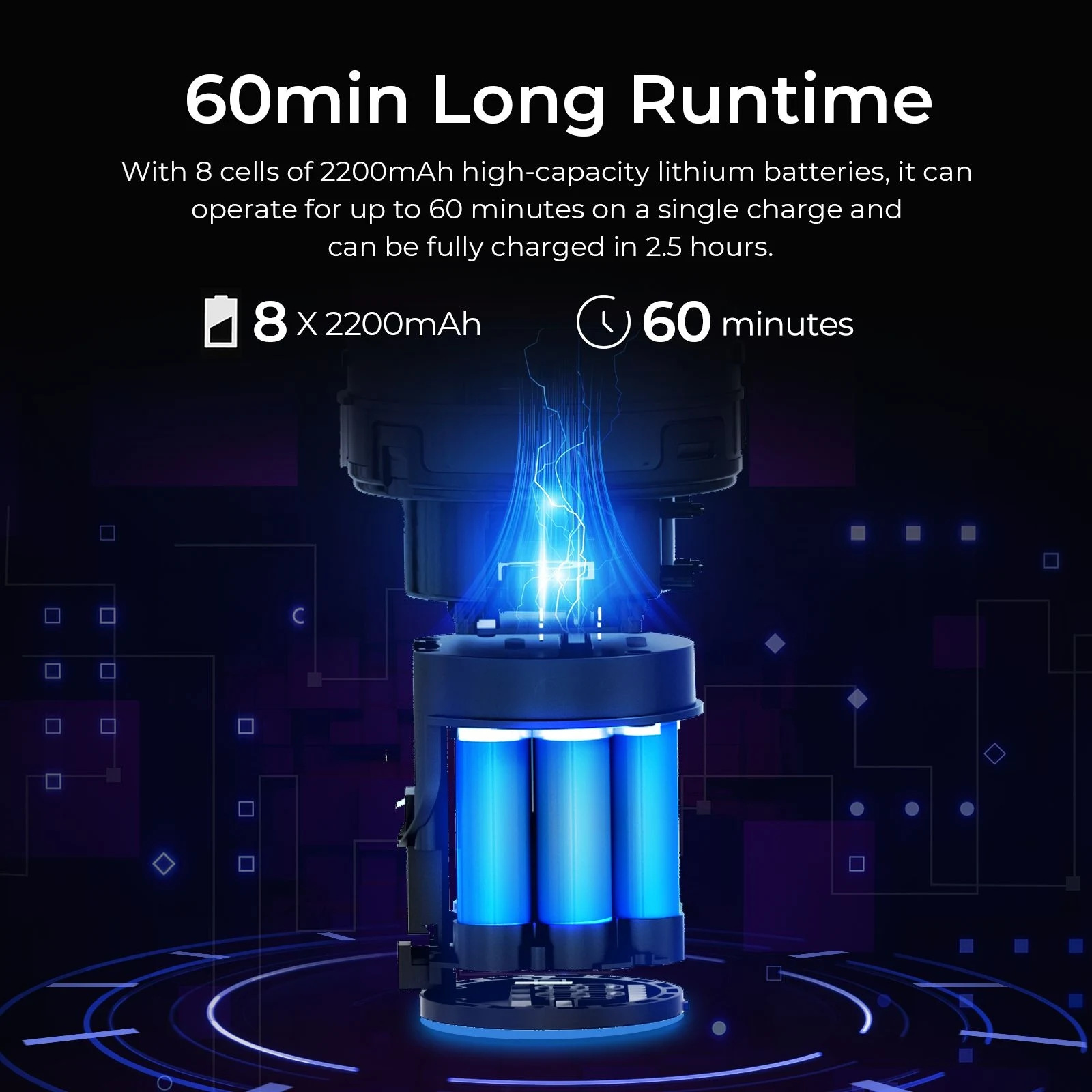 Laufzeit : 60/45/10 Min. (Niedrig-/Auto-/Hochgeschwindigkeitsmodus)