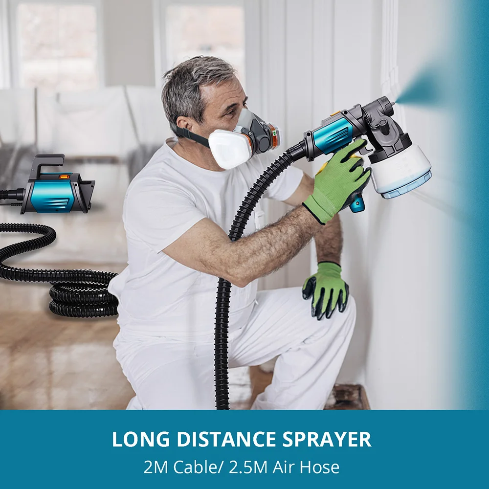 Diese Spritzpistole verfügt über ein ergonomisches Split-Design, das den Sprühgriff vom Motor trennt. Dies reduziert die Ermüdung der Hand und sorgt für mehr Flexibilität bei der Arbeit. Dank des hochwertigen 2,5-m-Schlauchs und des 3,9-m-Kabels ist die Bedienung freier und komfortabler.